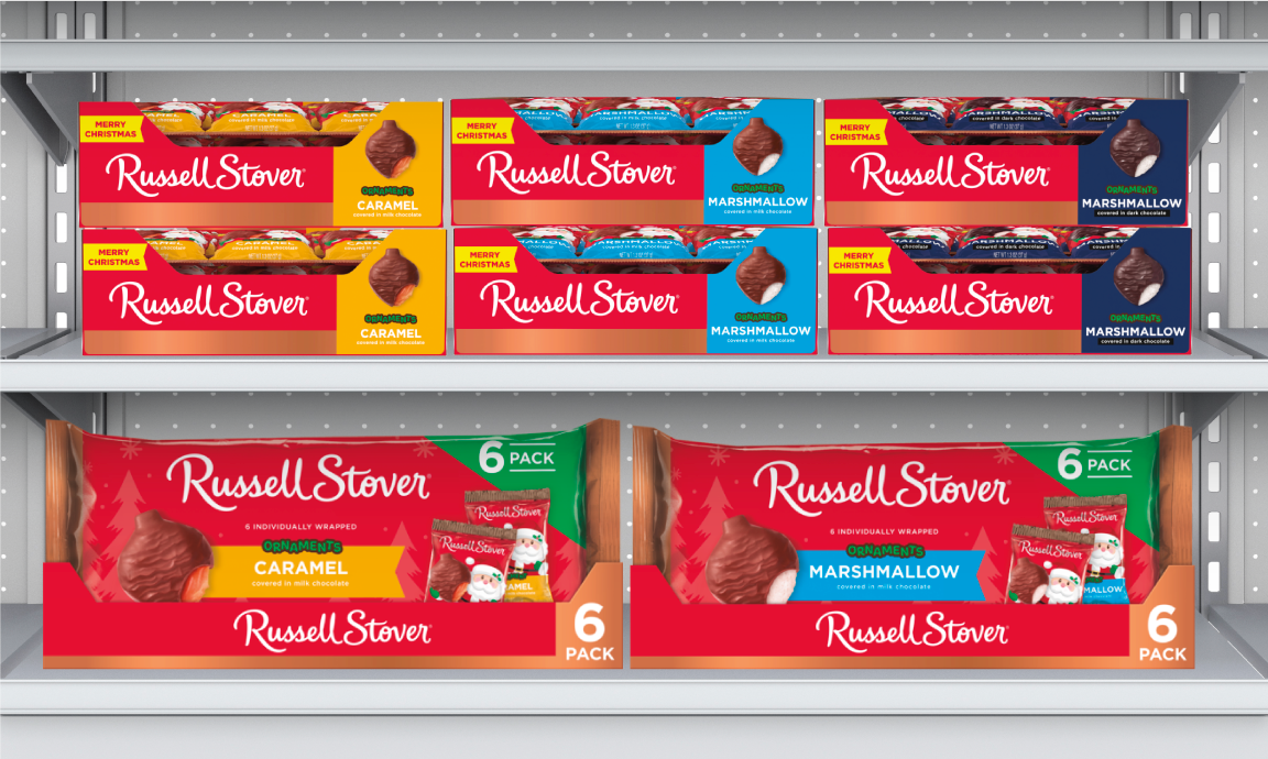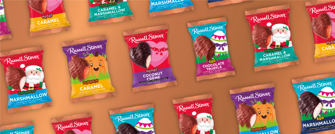 Russell Stover wanted to refresh their seasonal singles with a cohesive design that showcased their diverse flavors and aligned with the brand’s identity. The goal was to create playful, seasonal packaging that evoked joy and encouraged social media sharing.
