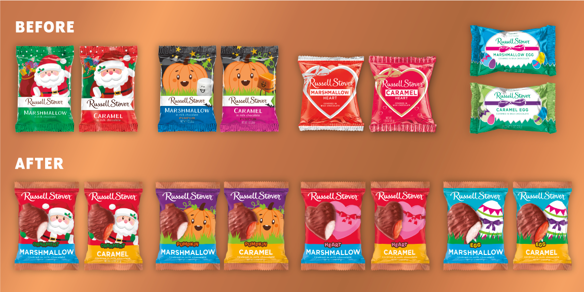 Russell Stover’s seasonal treats had outdated packaging that didn’t match the quality of their updated products. To improve sales, we refreshed the packaging to highlight the delicious fillings and celebrate the new shapes and sizes of the treats. The new, cohesive design now modernizes the brand’s image, giving customers even more reason to enjoy their sweet tradition.